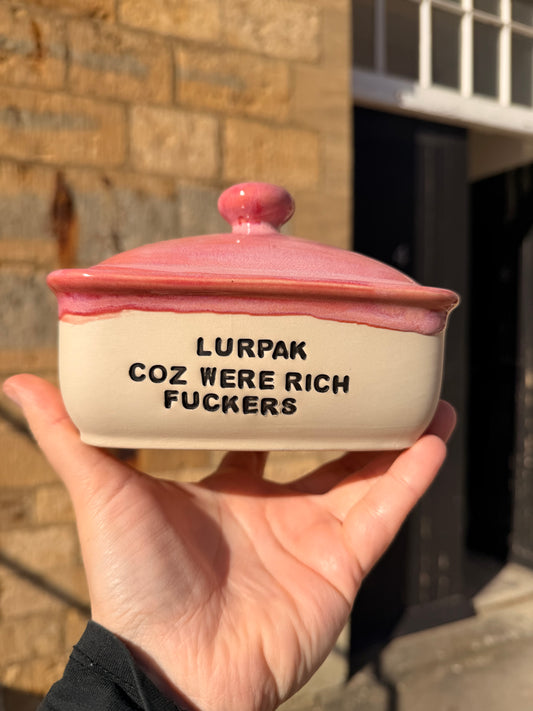 Handmade Pink Butter Dish - LURPAK CUS WE'RE FUCKING LOADED