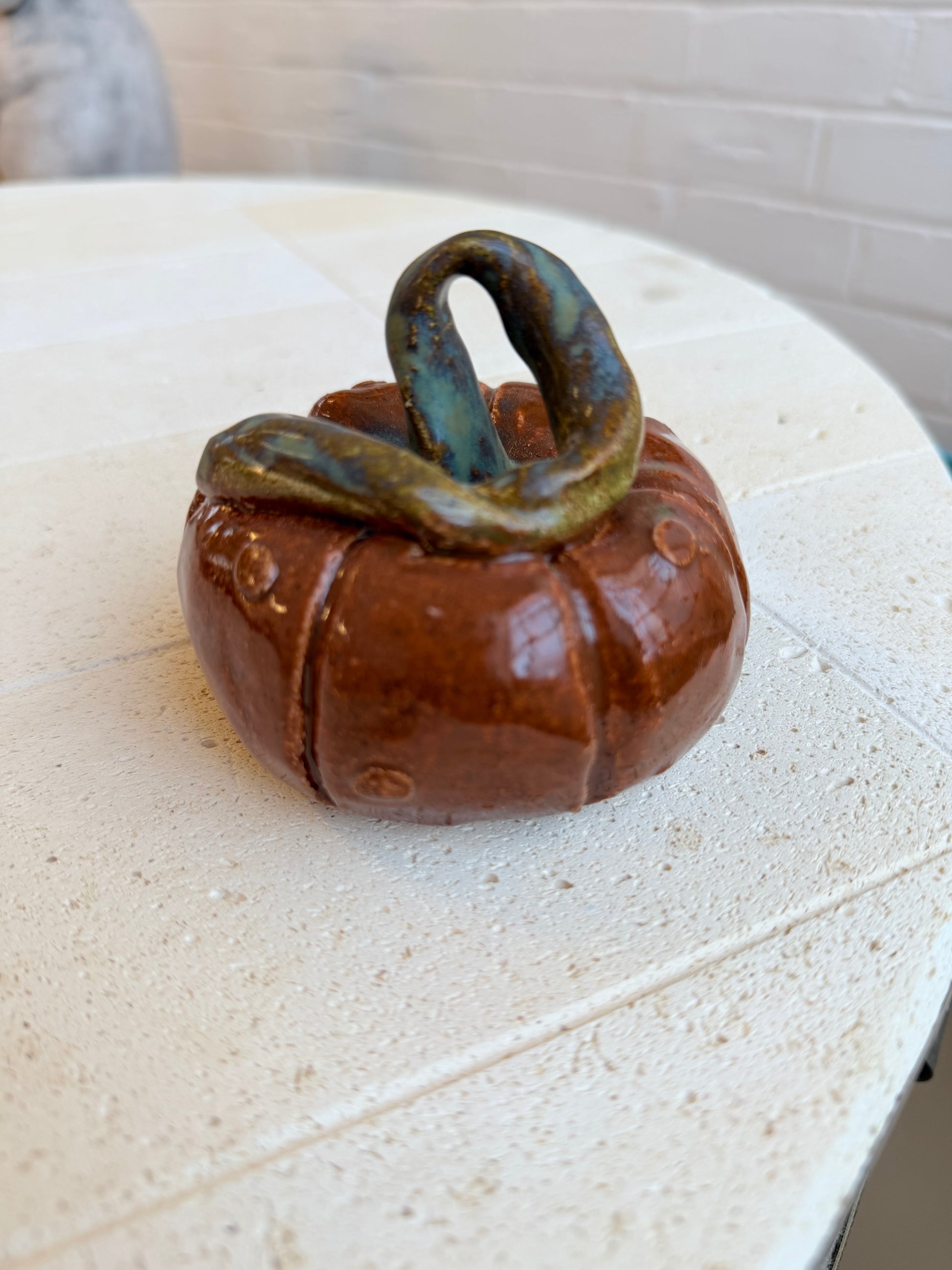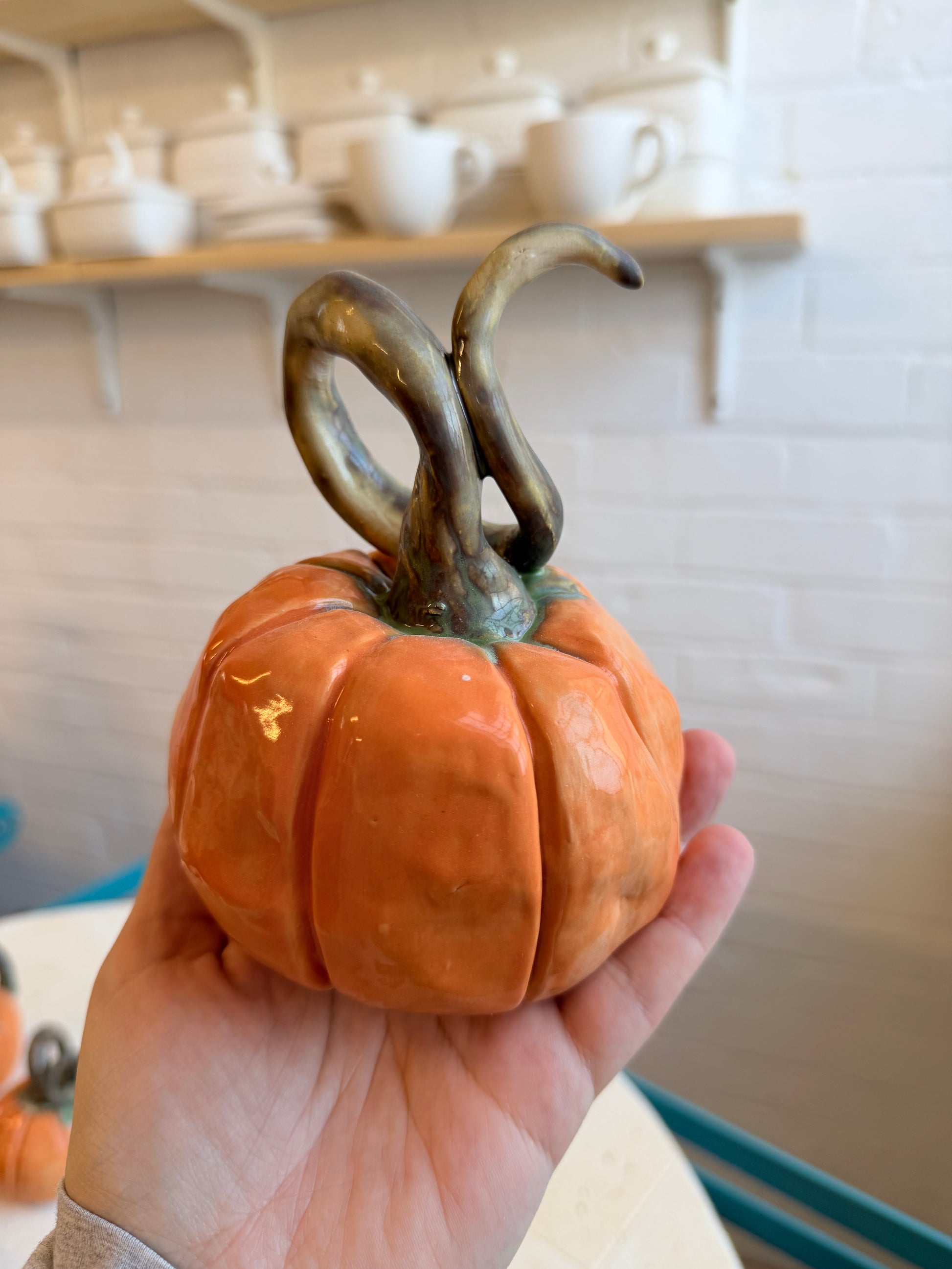 Bring a touch of autumn into your home with these handcrafted stoneware pumpkins. Each one is individually shaped, glazed, and fired by hand, giving every pumpkin its own unique character. Perfect for cosy seasonal styling, they make a great decoration for shelves, tables, or as part of a Halloween display.