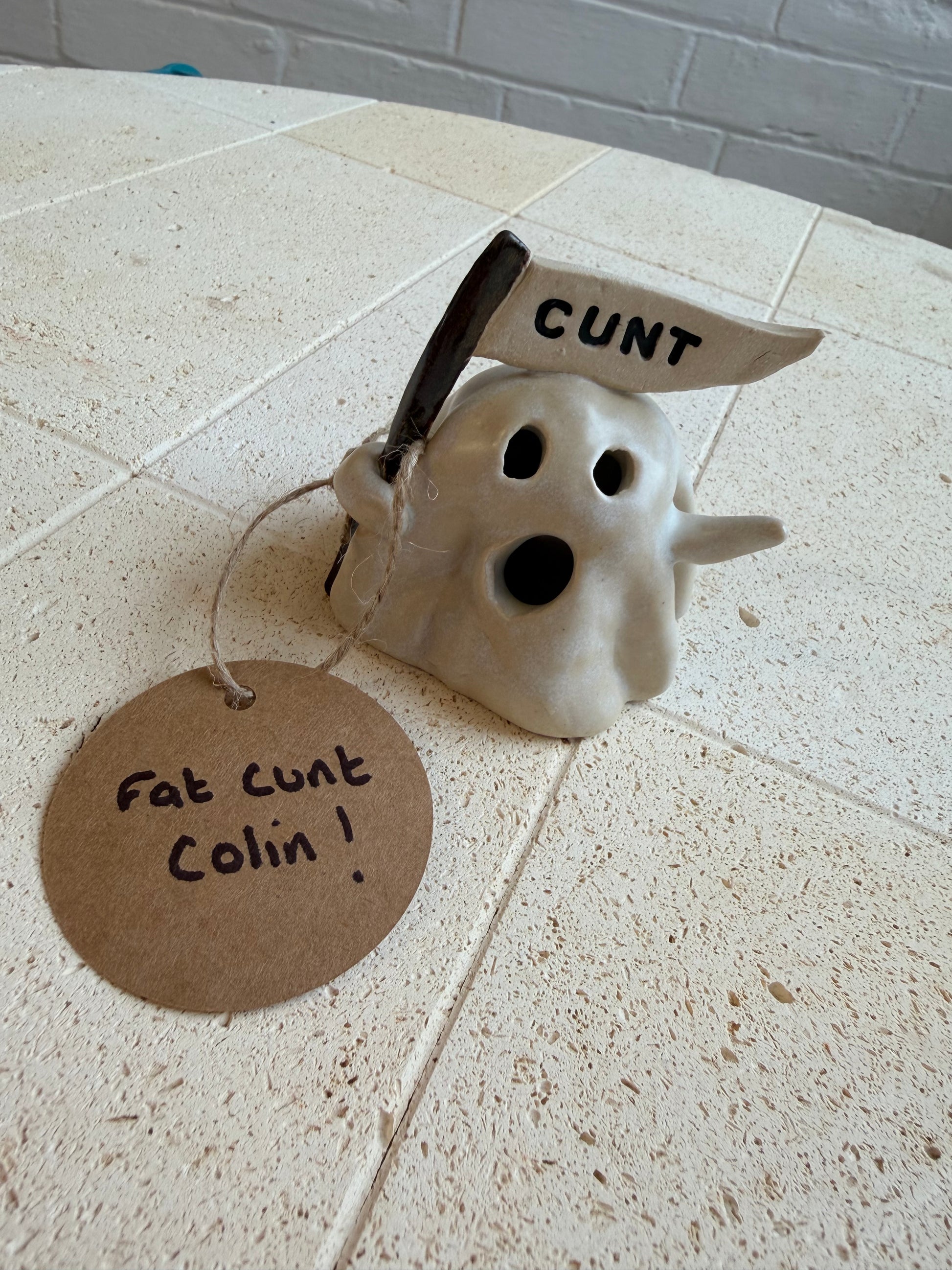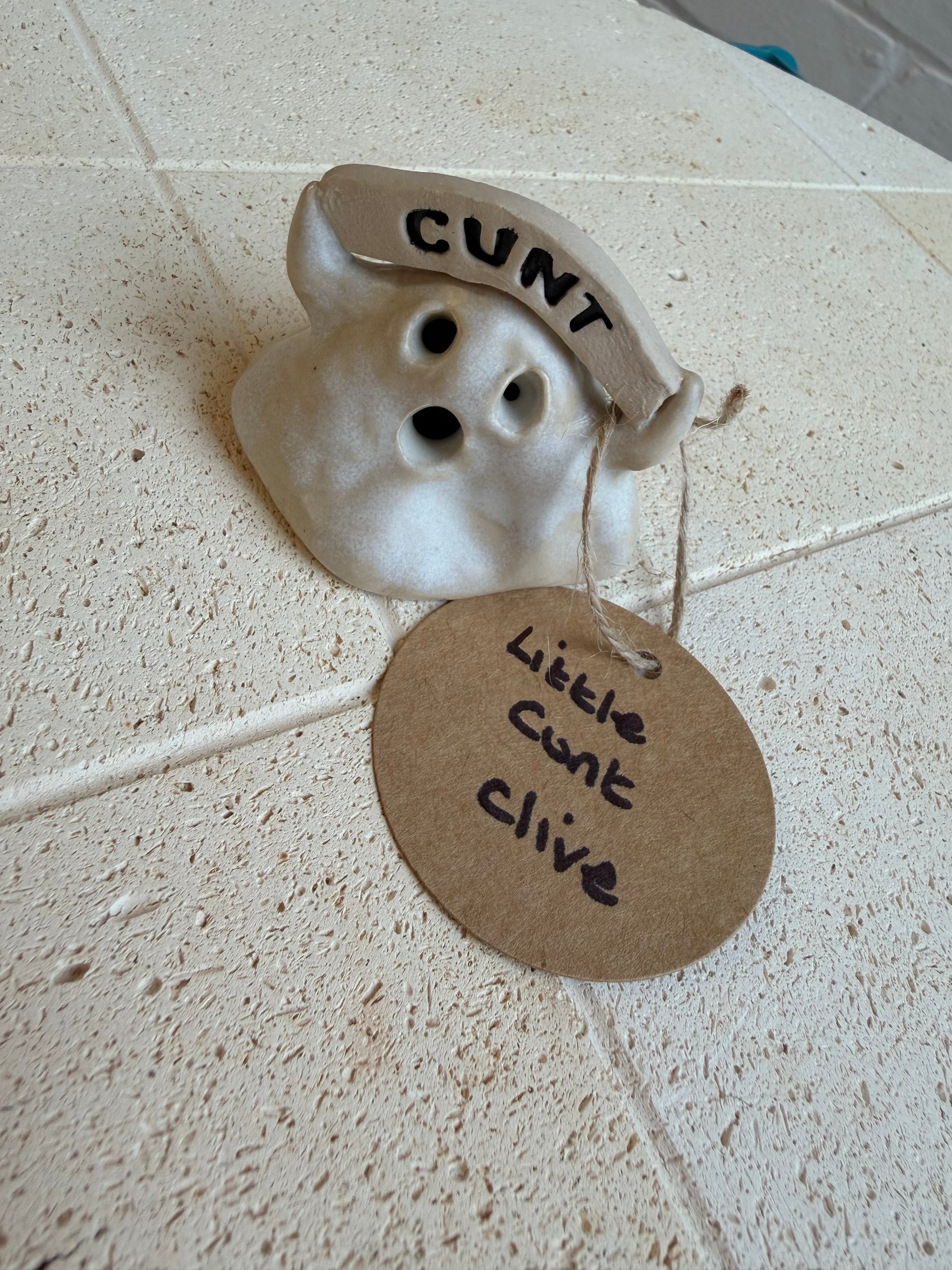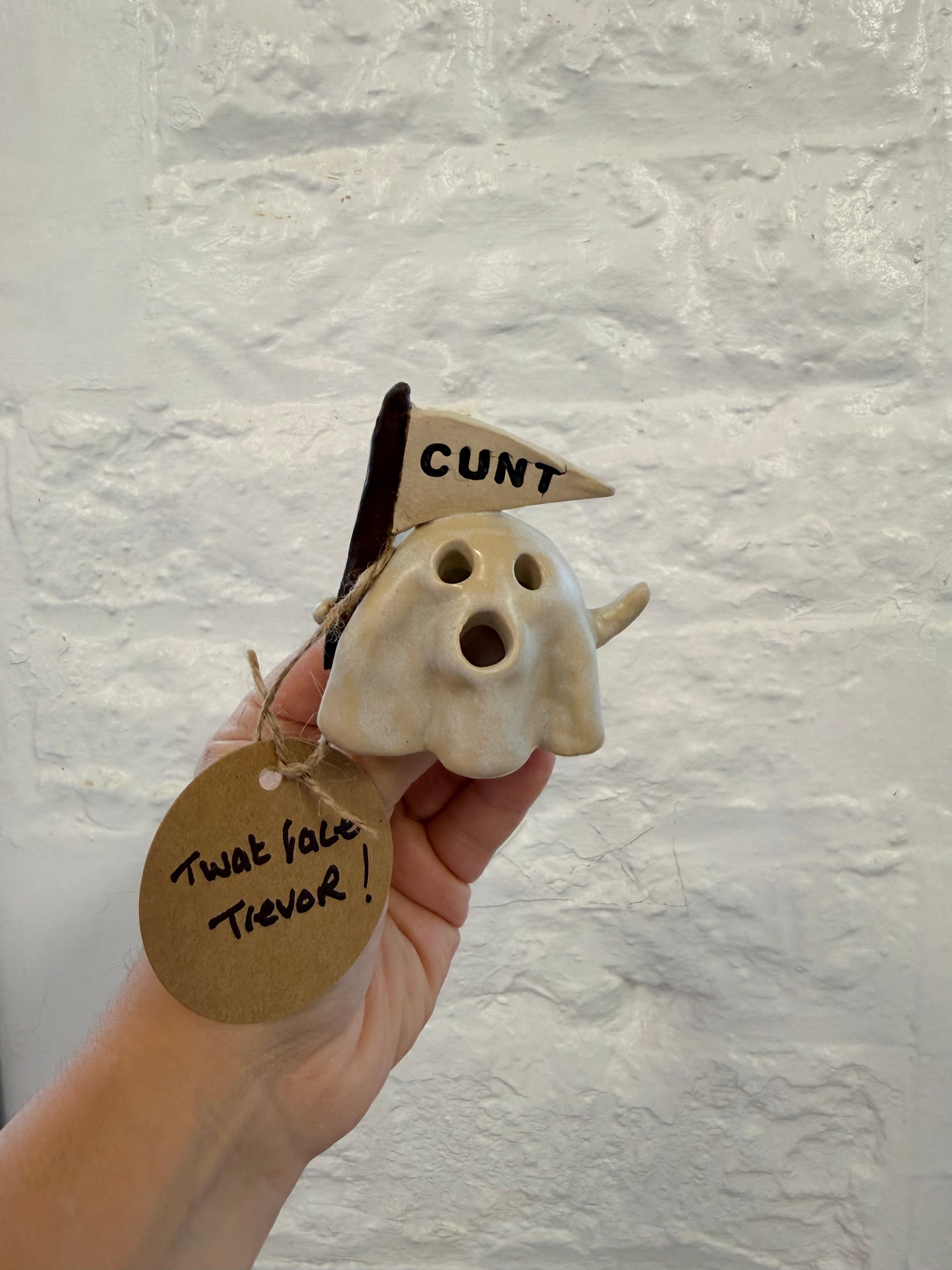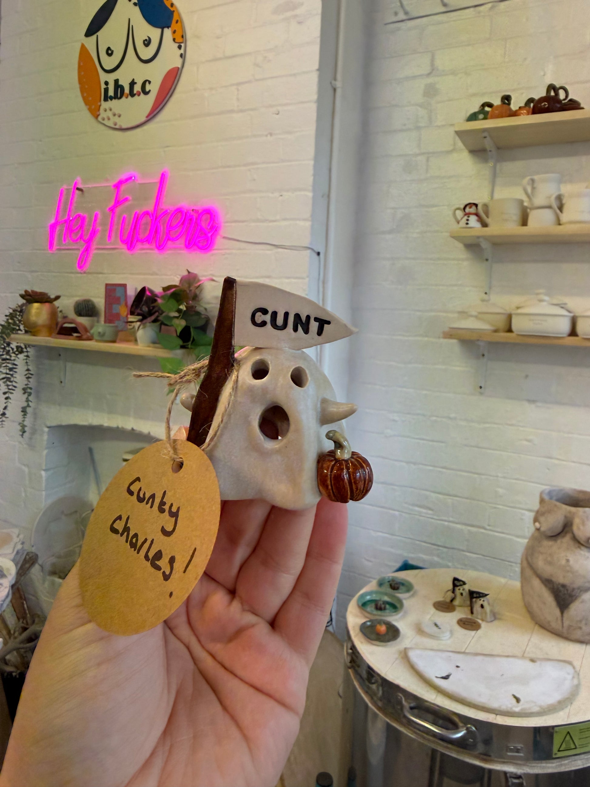 Meet the Cheeky Little Fuckers! A gang of handmade ceramic ghosts with more attitude than sense. 👻 Each one’s got a name, a face, and a filthy personality to match.